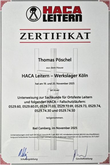 Zu unserem Produktspektrum gehört auch die Unterweisung zum Sachkundigen für die verschiedenen Leitergruppen, sowie kundenspezifische Sonderanfertigungen von der Planung in unserem Konstruktionsbüro bis hin zur Fertigung und Auslieferung.